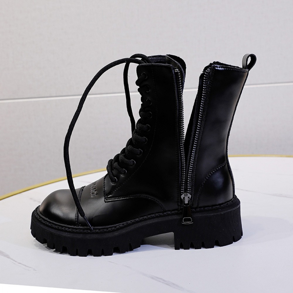 Martin Boots Women's Autumn New Thick-Soled Leather Boots Round Toe Thin Boots Mid-Tube Womens