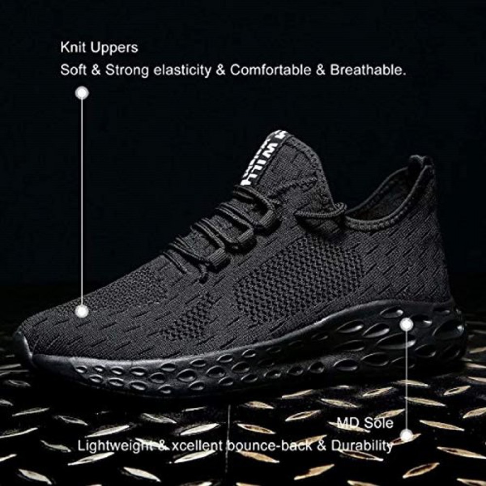 Men's Running Shoes Lightweight Casual Walking Breathable Gym Workout Athletic Tennis Sneakers Black-White