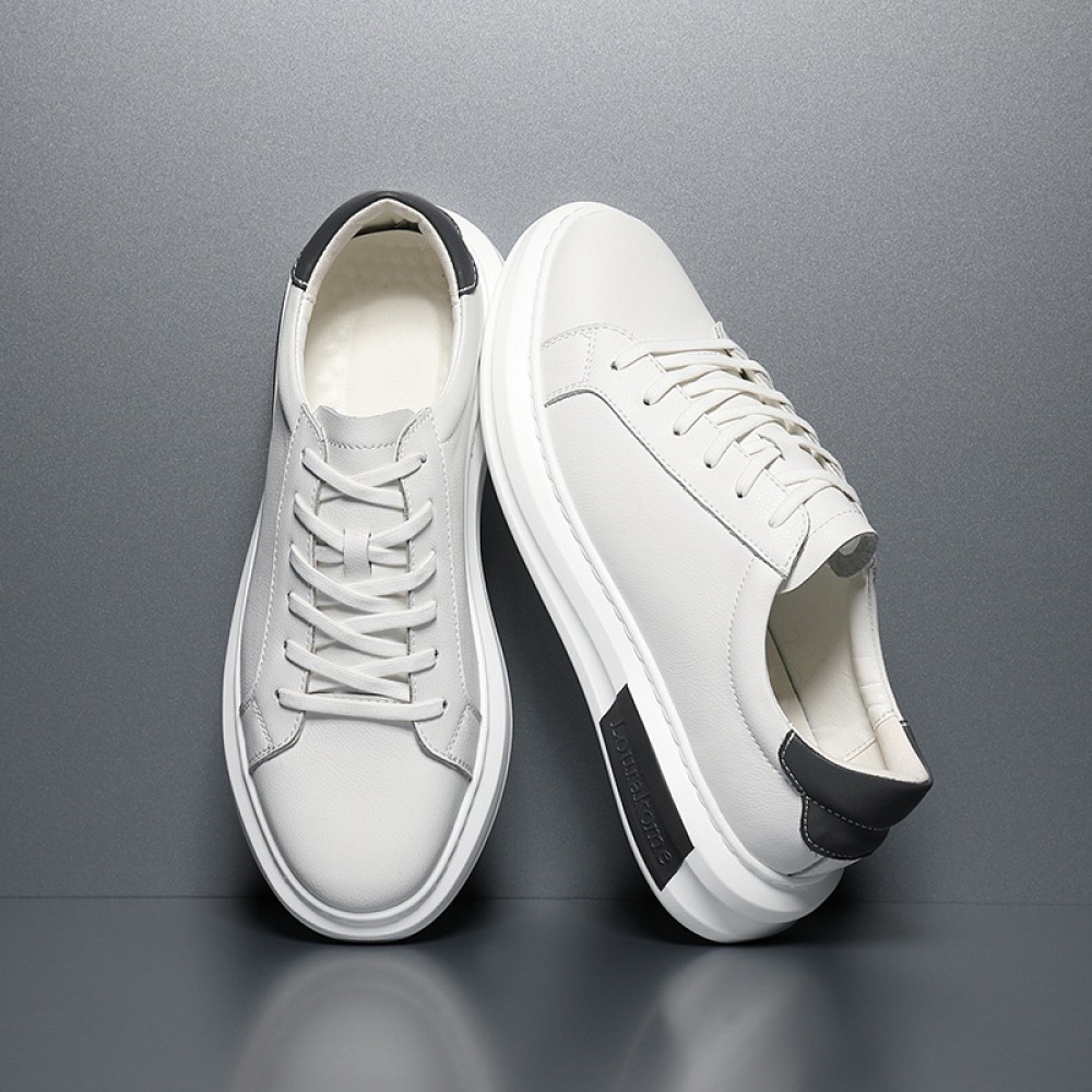 Autumn New Men's Shoes Leather Casual White Shoes Hot Style Trendy Lace Up Sports Shoes